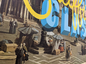 Medium: Typography art on salvaged vintage print. Each letter is hand drawn and painted